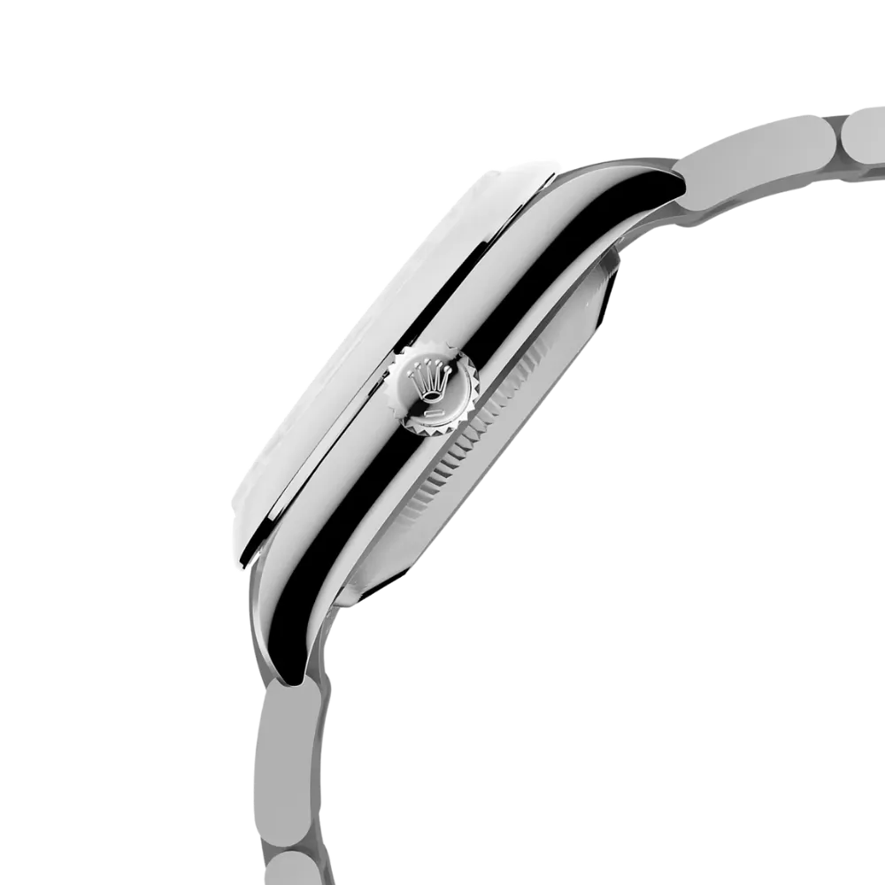 - Bracelet: Iconic Oyster bracelet with flat three-piece links in Oystersteel, secured with Oysterclasp and Easylink comfort extension.